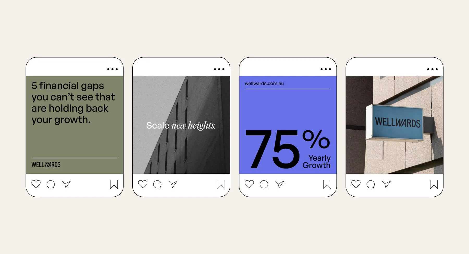The creative direction was inspired by modern architecture and classic financial journals, combining clean composition with confident typography and restrained detailing. A carefully considered colour palette brings energy and distinction while remaining grounded in a classic aesthetic, setting the brand